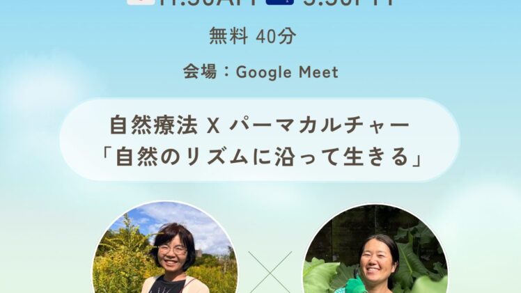 北海道在住、自然療法アドバイザー マエマコさんをお迎えして、「自然のリズムに沿って生きる」オンライン対談です!無料ですので、気軽に参加してください♪