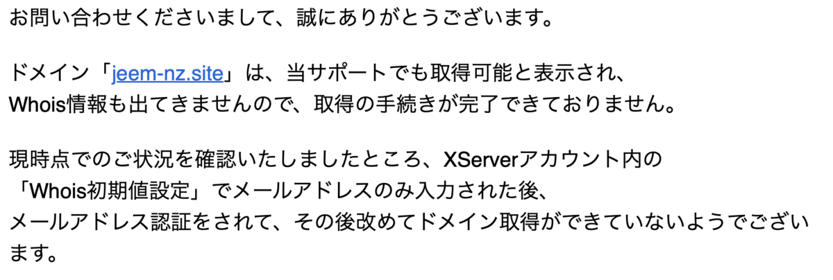 しかし、私にはメールが来ませんでした。サーバーの画面を見ても、取得したドメインが反映されていませんでした。