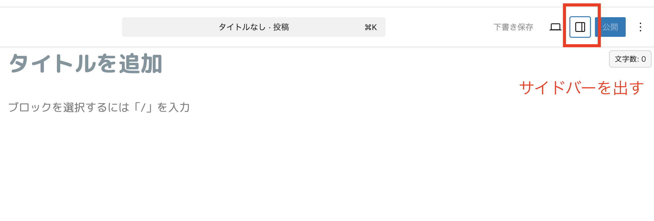 サイドバーを開くと初めに表示されるのは、「ブロック」表示なので、気づきにくいですが、
