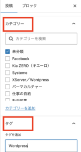 記事を公開する前に、「カテゴリー」と「タグ」もお忘れなく!