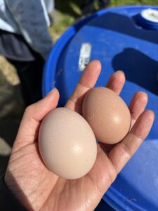 なんと昨日は産まなかった鶏が、一回で2個産んでくれたようです。ありがたい限りです。