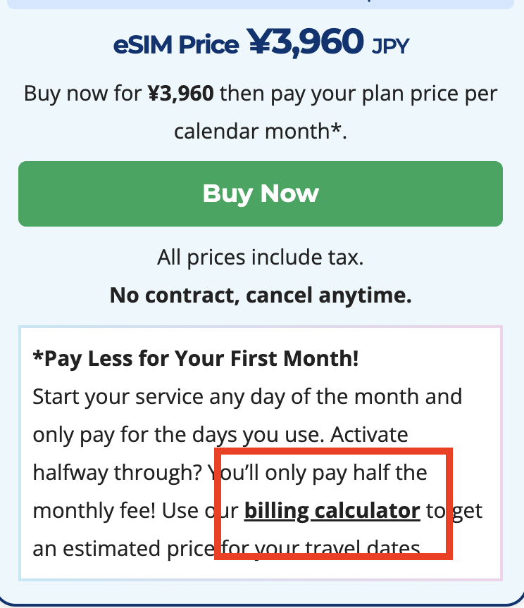 billing calculatorというリンクをポチッとします。私の滞在期間の見積もりです。