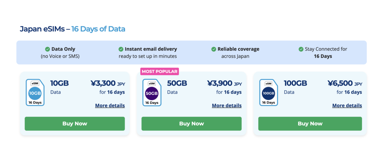 日本の電話番号付きSIM / eSIMの場合:問題ありません!ご注文時に「受取」を選択し、受取場所を選択して、日本到着後にお受け取りください。