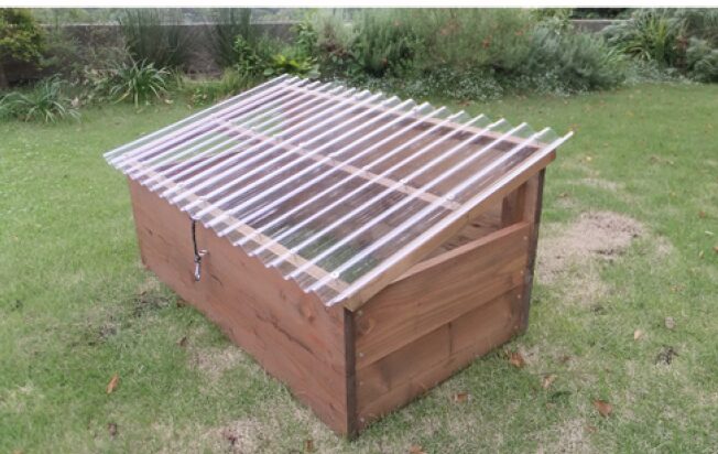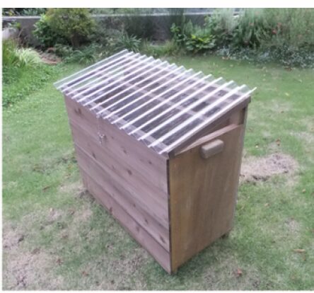 ニュージーランドは、日本と比べると資材が高価なので、無駄の出ない設計になっています。そのため、キエーロオフィシャルよりも一回り小さめサイズです。また、透明屋根の『波目』が横に設置されていますが、これは雨避けのために設置されているものなので、雨が中に入らなければ横でも問題ありません。