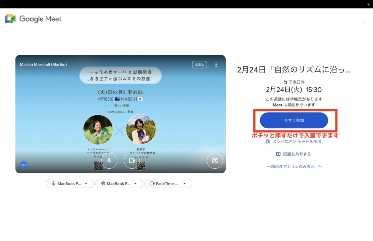 このような画面の右側に、『今すぐ参加』ボタンが表示されます。