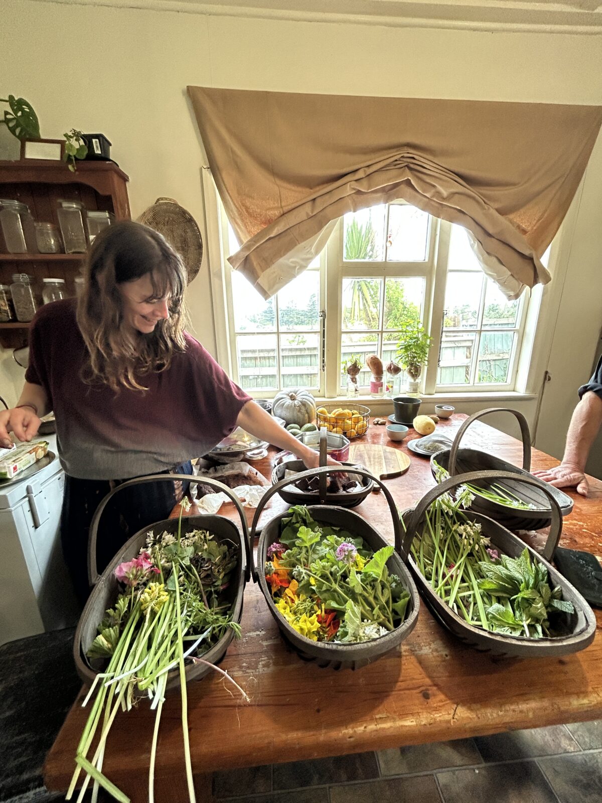 こんなカラフルな野草たち。バスケットはOPショップでやすかったのよーと講師さん